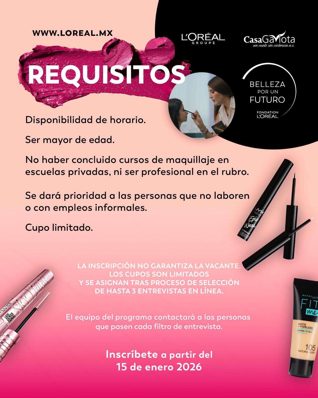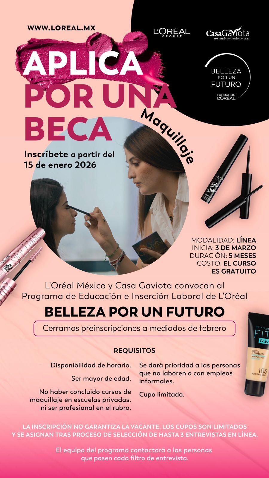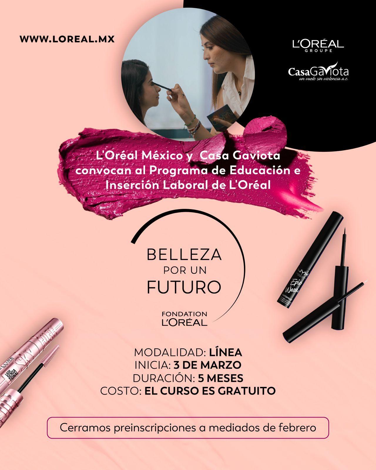 L’Oréal México y Casa Gaviota te invitan a formar parte del programa Educación e Inserción Laboral: Belleza por un Futuro, en su Curso de Maquillaje.